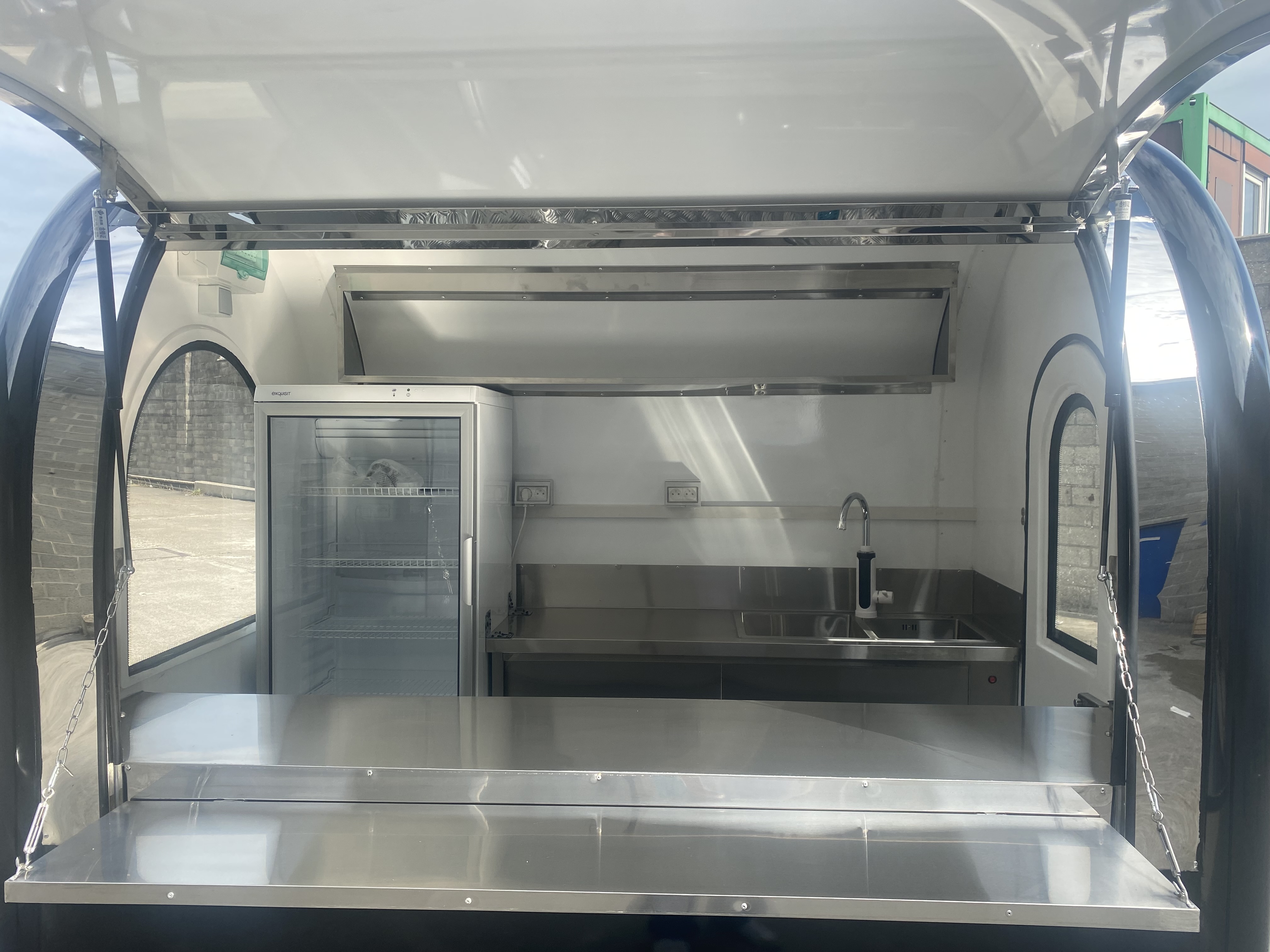 - open kasten aan de “luifelzijde”, kasten met deuren is uiteraard ook mogelijk.